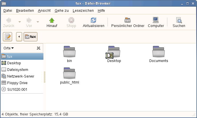 Verwenden Sie den Datei-Manager Nautilus, um Ordner und Dokumente zu erstellen und anzuzeigen, Skripts auszuführen und CDs Ihrer Daten zu erstellen. Öffnen Sie Nautilus, indem Sie auf Ihr Home-Verzeichnissymbol auf dem Desktop klicken. Der Inhalt Ihres Home-Verzeichnisses wird angezeigt.