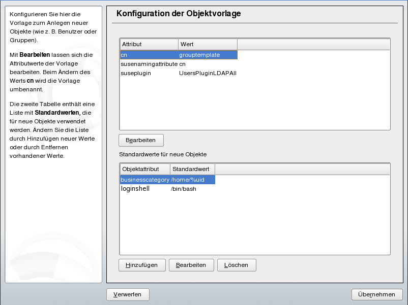 Abbildung 27-6 YaST Konfiguration einer Objektvorlage