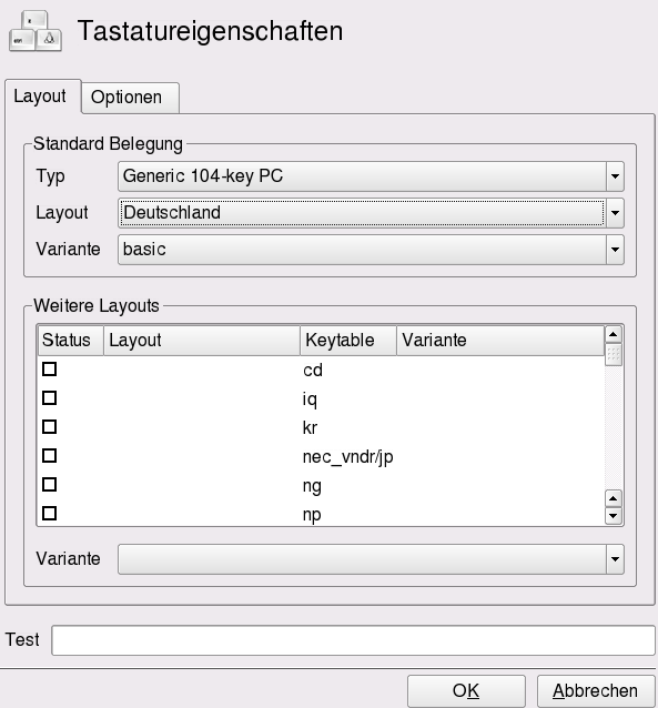 Optional können Sie aktivieren. Aktivieren Sie ein oder mehrere Kontrollkästchen in der Liste. Diese Funktion ist praktisch, wenn Sie im laufenden System ohne Neukonfiguration zwischen verschiedenen Sprachen oder Schriftsystemen umschalten möchten.