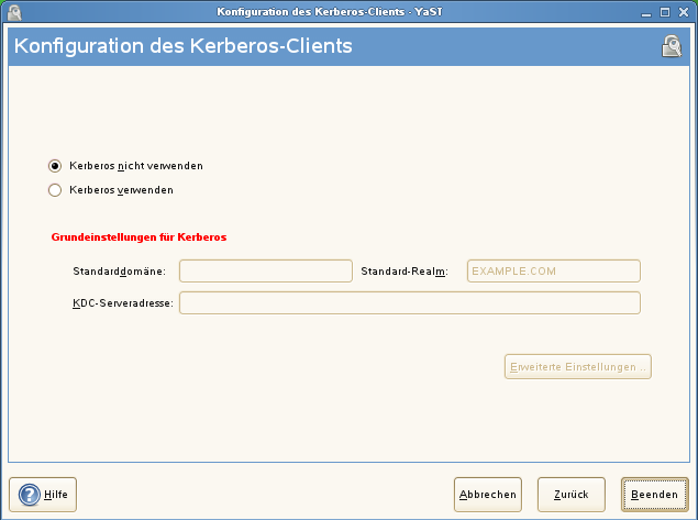 Abbildung 39-2 YaST: Grundlegende Konfiguration von Kerberos-Clients