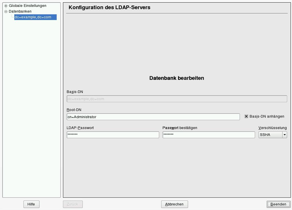 Gehen Sie zum Konfigurieren der Datenbanken Ihres LDAP-Servers wie folgt vor: