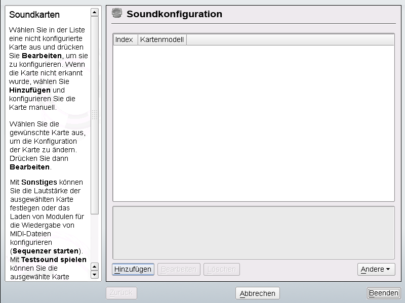 Wenn YaST Ihre Soundkarte nicht automatisch erkennt, gehen Sie folgendermaßen vor: