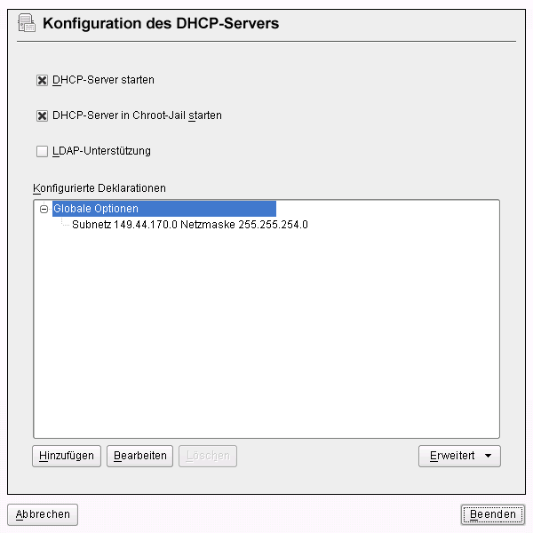 Abbildung 17-6 DHCP-Server: Chroot Jail und Deklarationen