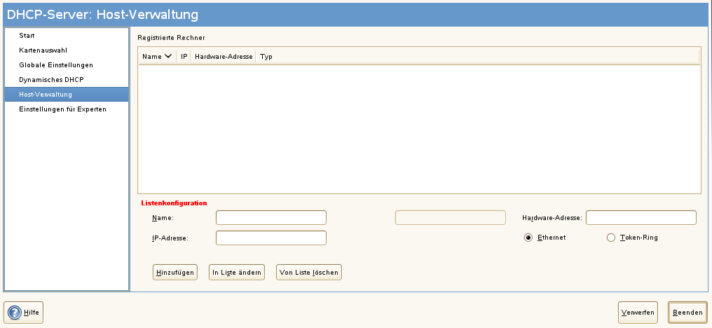 Abbildung 17-5 DHCP-Server: Host-Verwaltung