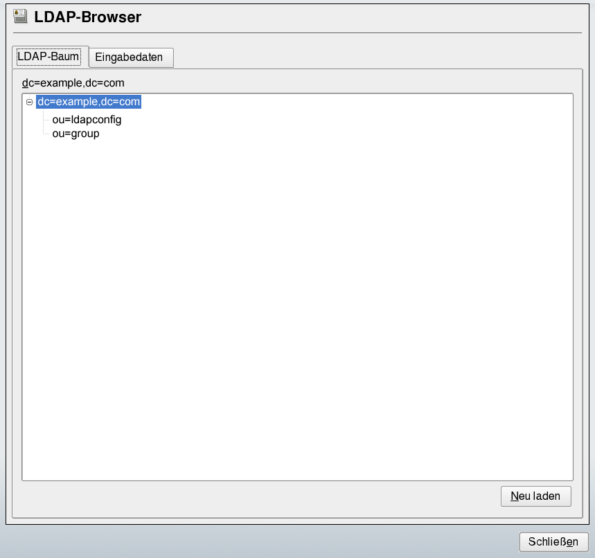 Der Karteireiter zeigt den Inhalt des LDAP-Verzeichnisses an, mit dem Ihr Rechner verbunden ist. Klicken Sie auf Einträge, um deren Untereinträge einzublenden.