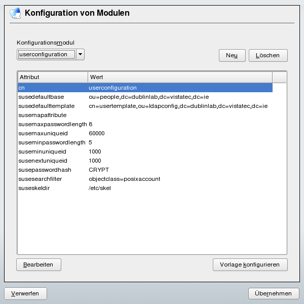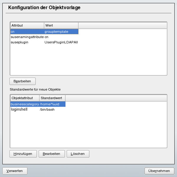 Abbildung 20-6 YaST Konfiguration einer Objektvorlage