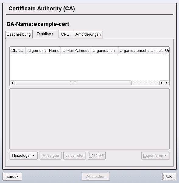 Klicken Sie auf (siehe Abschnitt 30.2.2, Erstellen oder Widerrufen einer untergeordneten Zertifizierungsstelle).