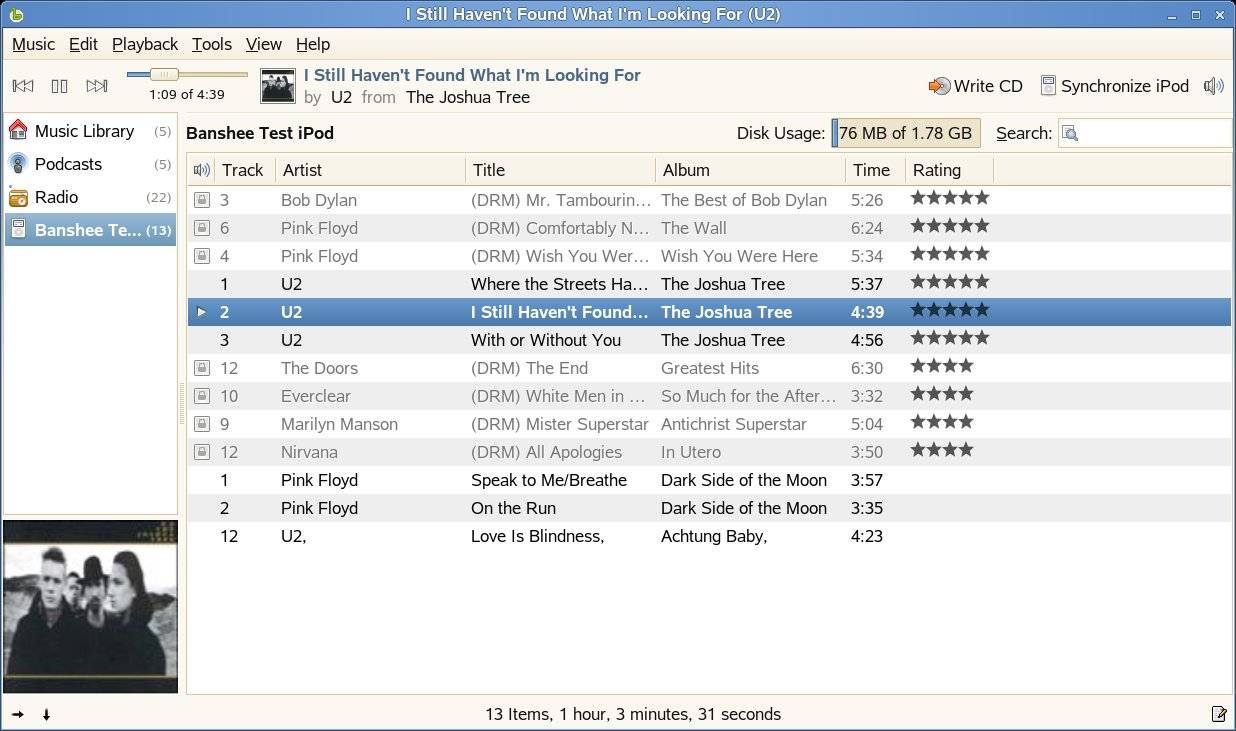 Banshee also synchronizes your ratings and cover art in your tracks to your iPod.