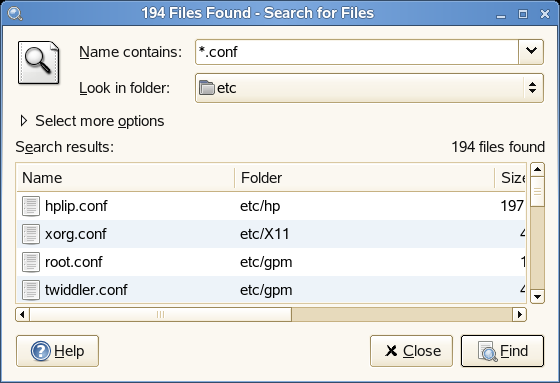 With Search for Files, you can locate files on your computer or in the file system using a variety of search criteria, such as file content, date, owner, or file size. Start it by clicking .