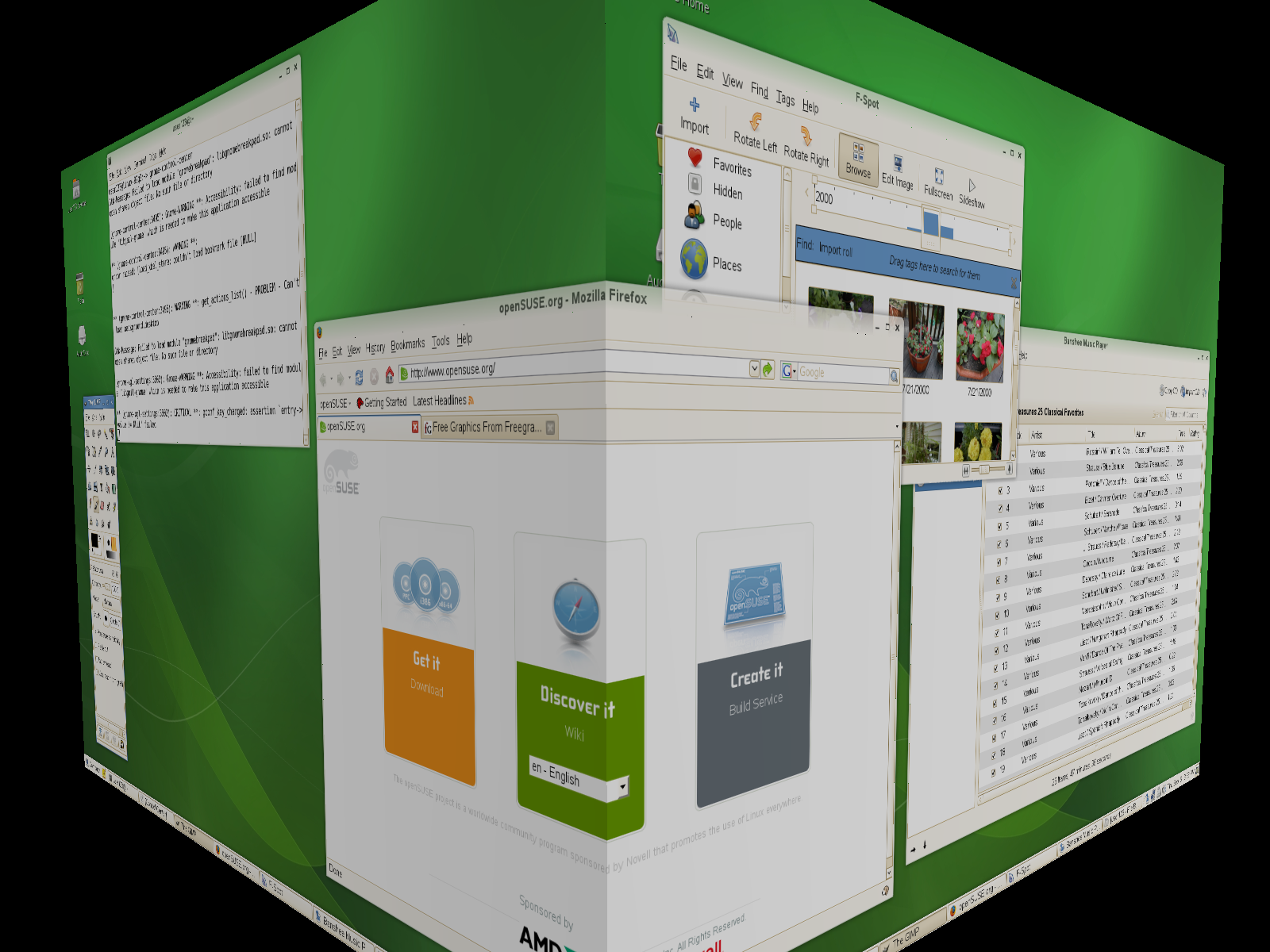 Um Composition-Desktop-Effekte verwenden zu können, ist ein grafischer Adapter erforderlich, der 3D-Unterstützung mit einem entsprechenden Treiber bietet, der wiederum die installierte 3D-Beschleunigung unterstützt. 3D-Beschleunigung muss ebenfalls aktiviert sein. Mithilfe von SaX2 können Sie die Einstellungen für die Grafikkarte und den Bildschirm bei Bedarf anpassen. Falls die 3D-Beschleunigung einwandfrei funktioniert, werden Composition-Effekte standardmäßig aktiviert.
