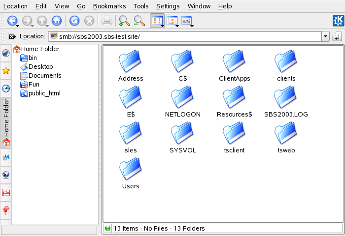 Use Konqueror to display the contents of your Windows user folder just as you would for displaying a Linux directory. Create new files and folders on the Windows server.