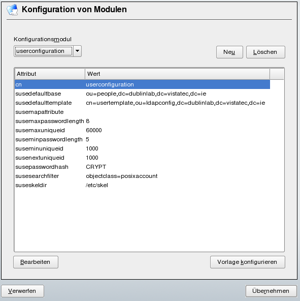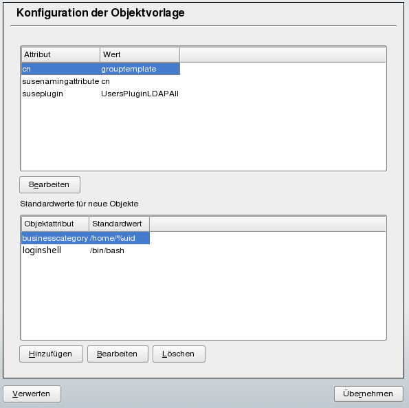 Abbildung 26-9 YaST Konfiguration einer Objektvorlage