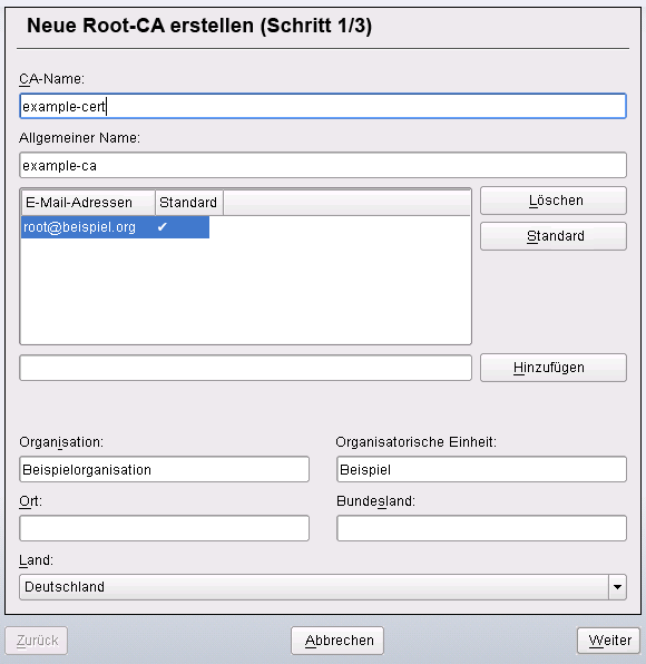 Fahren Sie entsprechend den Anweisungen in Abschnitt 35.2.1, Erstellen einer Stammzertifizierungsstelle fort.