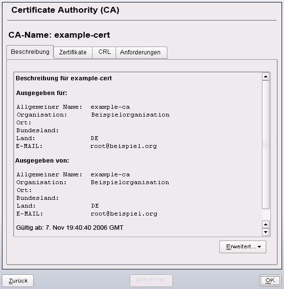 Abbildung 35-4 YaST-CA-Modul: Erweiterte Einstellungen