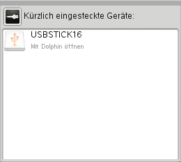 Abbildung 7-2 Automatische Erkennung eines USB-Sticks in KDE