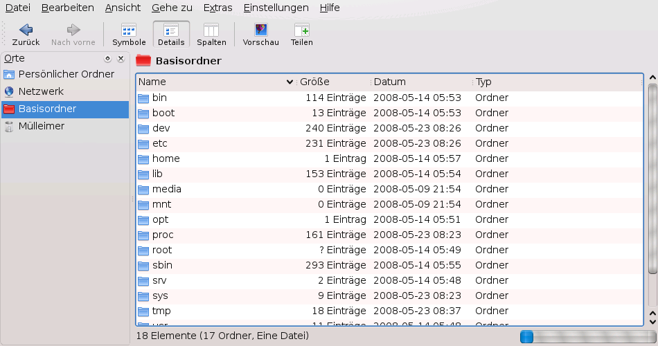 Abbildung 7-3 Dateien und Ordner in der KDE-Dateiverwaltung