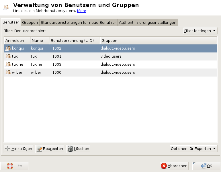 Abbildung 8-1 YaST – Verwaltung von Benutzern und Gruppen