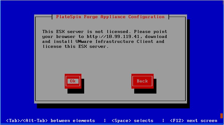 Stellen Sie beim erstmaligen Einschalten sicher, dass das PlateSpin Forge-Konfigurationsdialogfeld angezeigt wird.