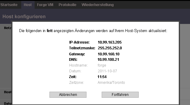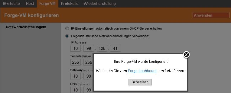 Sie werden aufgefordert, den Host bzw. die Forge-VM einzurichten: