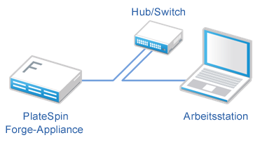 Direkte Verbindung: Verbinden Sie die PlateSpin Forge-Appliance und den Computer direkt über ein Crossover-Kabel: