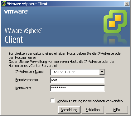 Das Anmeldefenster des VMware-Clients wird angezeigt.