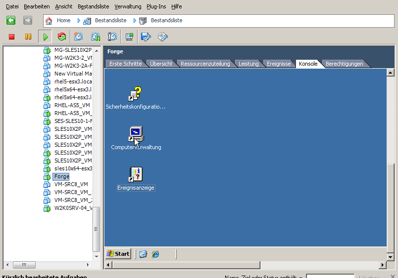 Arbeiten Sie über die Konsole genauso mit der Management-VM, wie Sie auf einem physischen Computer mit Windows arbeiten würden.