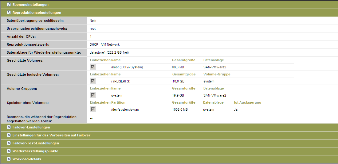 Das Layout der Volume-Gruppen und logischen Volumes wird beibehalten, sodass Sie es während des Failbacks neu erstellen können.