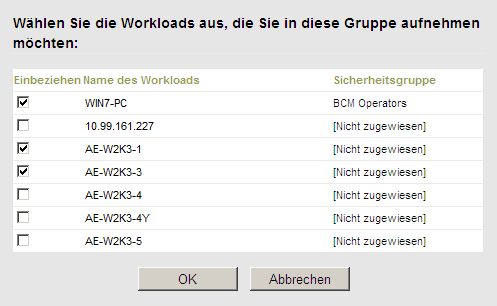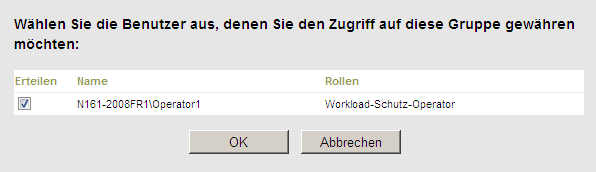 Nur die Benutzer in dieser Sicherheitsgruppe haben Zugriff auf die ausgewählten Workloads.