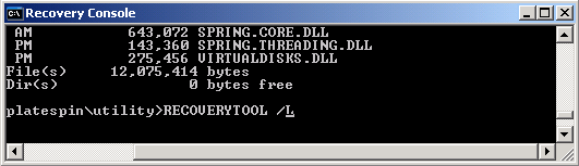 Geben Sie zur Verwendung des Recovery-Tools den Befehlsnamen RECOVERYTOOL, gefolgt vom anwendbaren Parameter, im Recovery Console-Fenster ein.