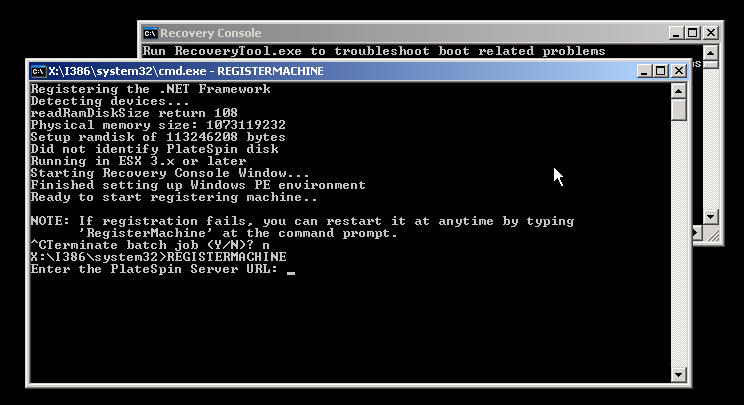 Booten Sie den physischen Zielcomputer mit dem Boot-Image und warten Sie, bis die Befehlszeilenfenster und geöffnet werden.
