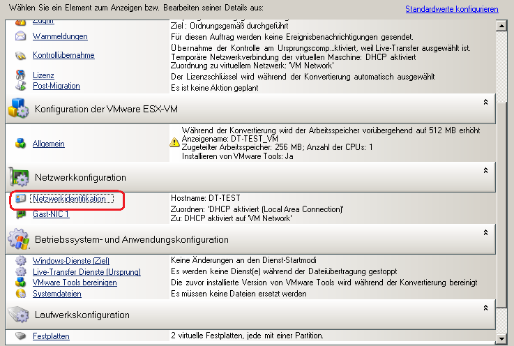 Im erweiterten Modus: Klicken Sie im Fenster „Migrationsauftrag“ unter „Netzwerkkonfiguration“ auf .