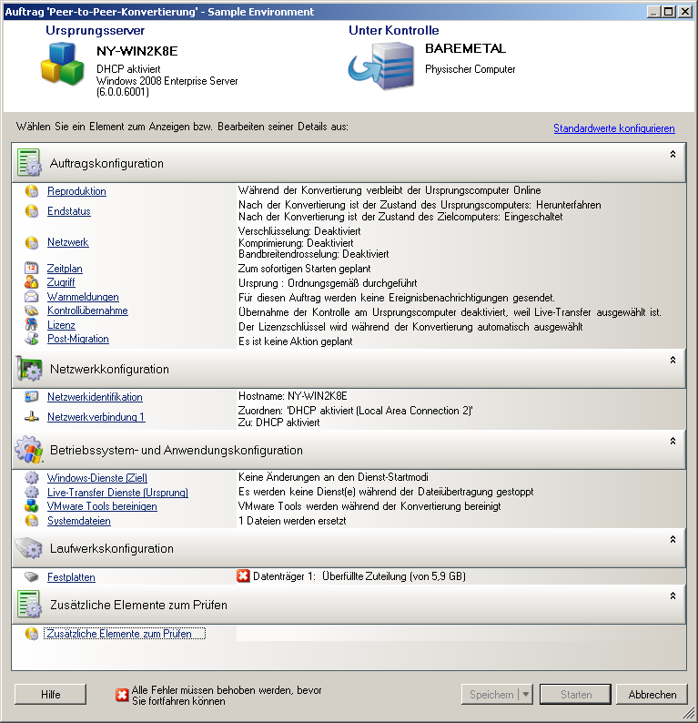 Abbildung 4-2 Fenster „Auftrag 'Peer-to-Peer-Konvertierung'“ (V2P im erweiterten Modus)