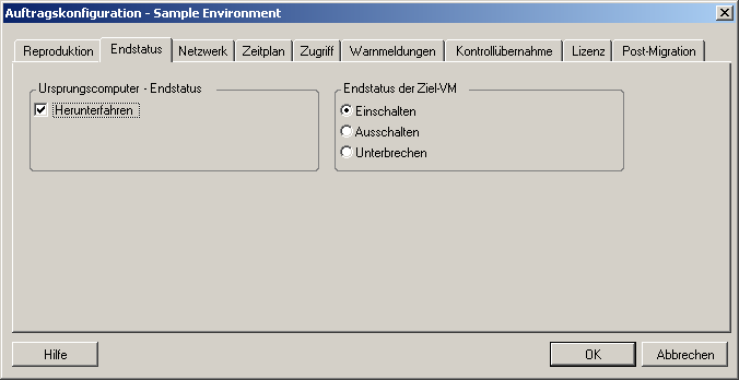 Sie können für den Ursprung und das Ziel einen anderen als den vorgegebenen Post-Migrations-Endstatus auswählen: