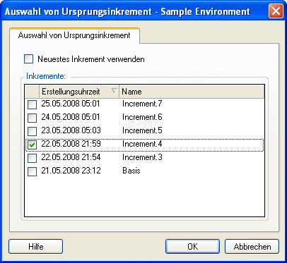 Alle Inkremente, die vor dem ausgewählten Inkrement erstellt wurden, werden ebenfalls angewandt.