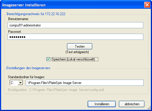 Das Dialogfeld Imageserver installieren wird geöffnet.