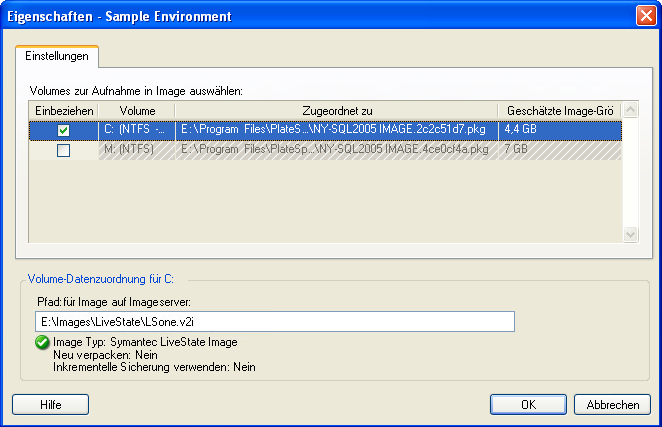 Wenn Sie geeignete Images oder Raw-Volume-Daten für jedes einzubeziehende Volume ausgewählt haben, bestätigen Sie die Einstellungen in den Bereichen und .