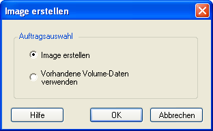 Wählen Sie und klicken Sie anschließend auf . Informationen über die Option finden Sie unter Erstellen von Images unter Verwendung von Raw- oder vorhandenen Volume-Daten.