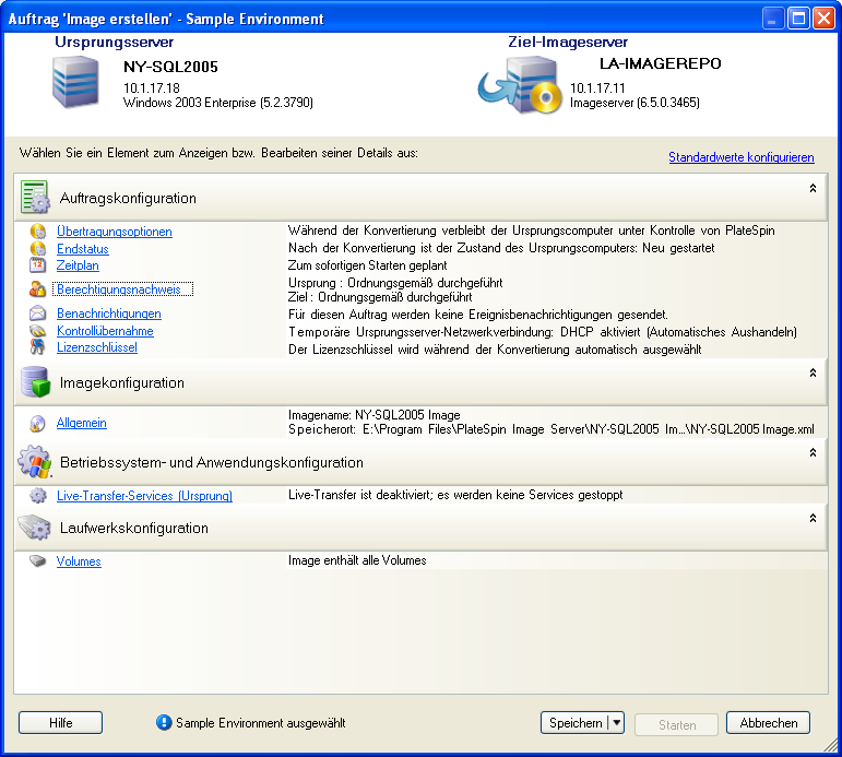 Imagekonfiguration: Geben Sie den Imagenamen und den Pfad zu dem Speicherort ein, an dem das Image gespeichert werden soll, und geben Sie an, ob die NTFS-Komprimierung verwendet werden soll (klicken Sie hierzu unter "Image-Konfiguration" auf ).