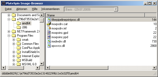 Für die Wiederherstellung steht das Dienstprogramm PlateSpin® Image Browser zur Verfügung, mit dem Sie folgende Elemente durchsuchen und sortieren bzw. Dateien daraus exportieren können: