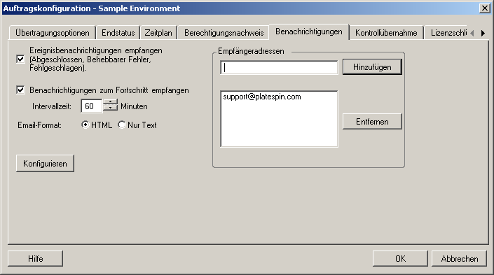 Sie können einen Konvertierungsauftrag so einrichten, dass automatisch Email-Benachrichtigungen über folgende Inhalte an eine bestimmte Adresse gesendet werden:
