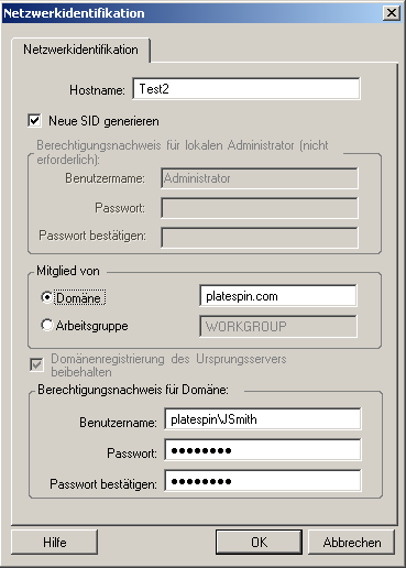 Die ordnungsgemäße Konfiguration der Netzwerkidentität des Konvertierungsziels ist besonders wichtig, wenn Sie einen Workload in eine andere Domäne migrieren oder aus einer Domäne herausnehmen möchten oder wenn Sie den Hostnamen eines Workloads ändern möchten, während sich dieser in der Domäne befindet.