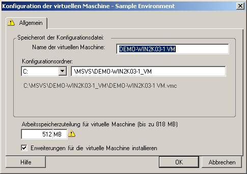 Folgende Konfigurationsoptionen sind spezifisch für Microsoft Virtual Server.