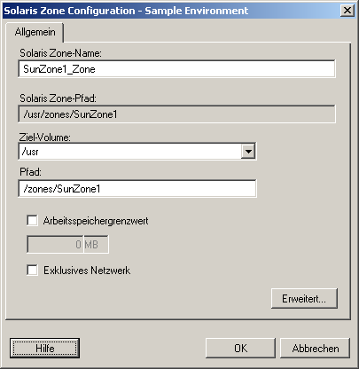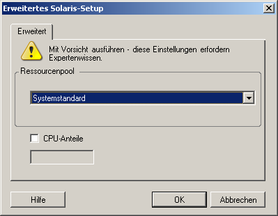 Folgende Konfigurationsoptionen sind spezifisch für Solaris. Zum Zugriff auf Einstellungen, die die CPU-Anteile der Ressourcenpools steuern, klicken Sie auf