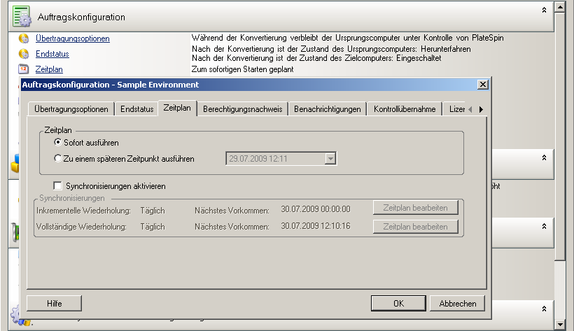 Ein wichtiges Element eines Konvertierungsauftrags ist die Planung. Mit Planungsoptionen können Sie Folgendes festlegen: