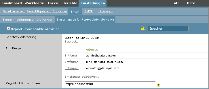 Führen Sie folgende Schritte aus, um PlateSpin Protect so einzurichten, dass es automatisch Reproduktionsberichte per Email sendet: