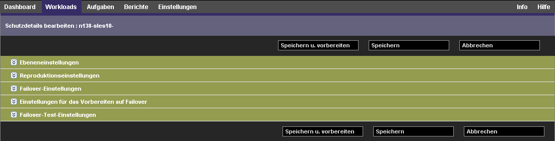 Konfigurieren Sie die Schutzdetails in jeder Einstellungsgruppe so, wie sie für die Aufrechterhaltung Ihres ununterbrochenen Geschäftsbetriebs erforderlich sind. Weitere Informationen hierzu finden Sie unter Workload-Schutz-Details.