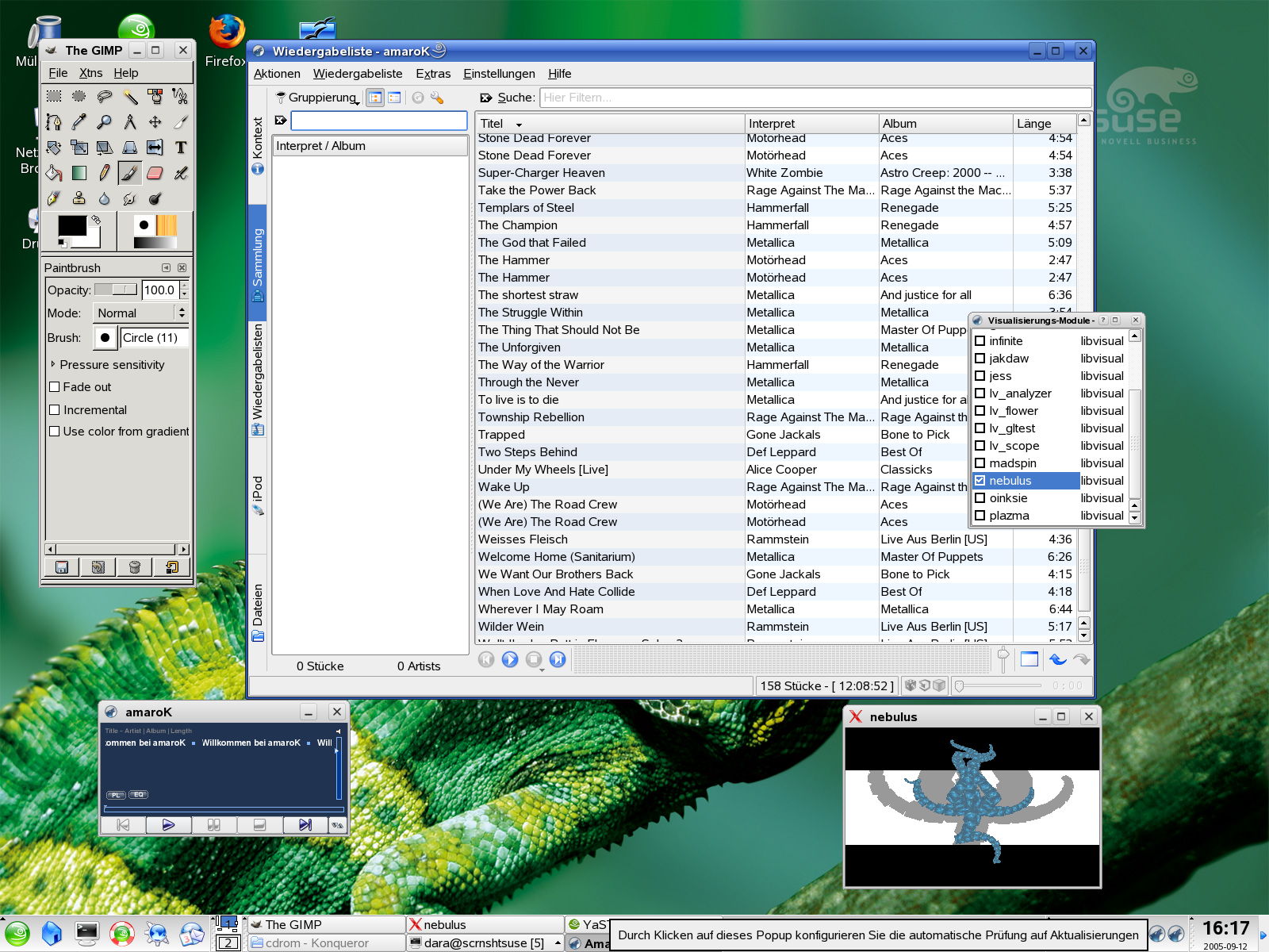 Der Musikplayer von KDE, amaroK, ermöglicht es Ihnen, verschiedene Audioformate abzuspielen, Wiedergabelisten zu erstellen, Musik von einem iPod* zu importieren (oder Dateien auf Ihren iPod hochzuladen) und Streaming-Audio-Broadcasts von Internet-Radiosendern anzuhören. Die unterstützten Dateitypen variieren in Abhängigkeit des für amaroK verwendeten Moduls.