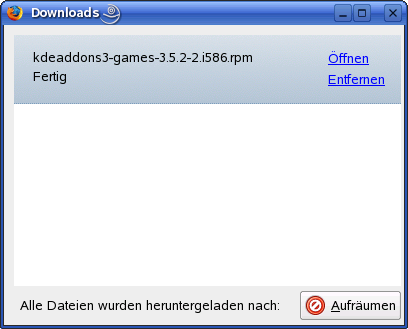 Sie können die heruntergeladenen Dateien direkt hier öffnen. Um die History der heruntergeladenen Dateien zu leeren, klicken Sie auf .