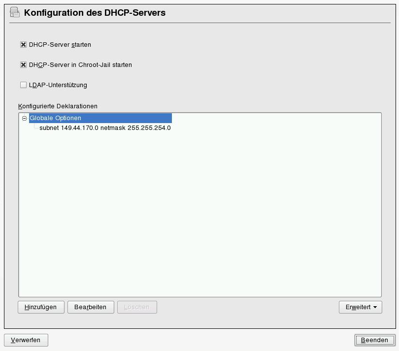 Abbildung 22-6 DHCP-Server: Chroot Jail und Deklarationen