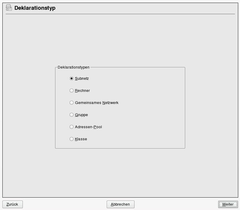 Abbildung 22-7 DHCP-Server: Wählen eines Deklarationstyps